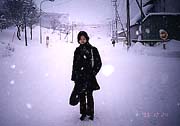 彼女さん:雪で前が見えない!大阪じゃぁ体験できない!