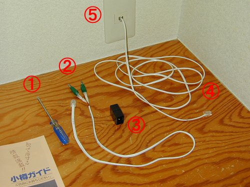 部屋の電話機ははずしておきます。電話機切り替え器もホームセンターにありますので